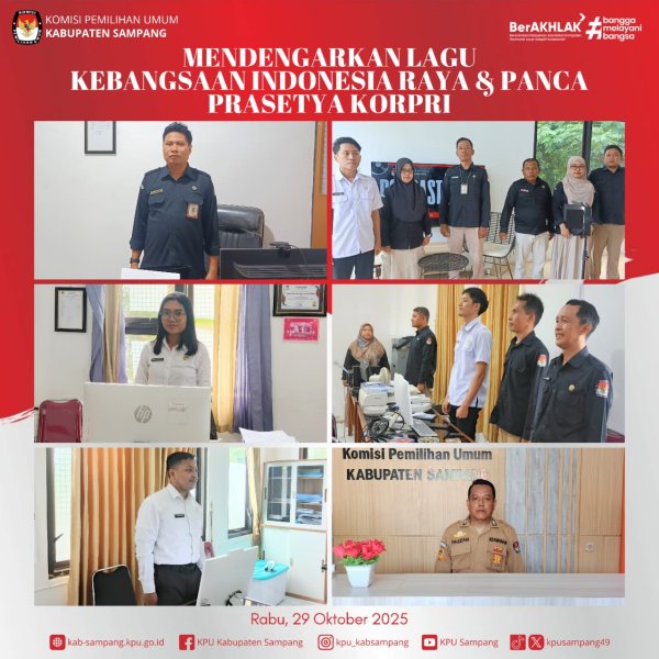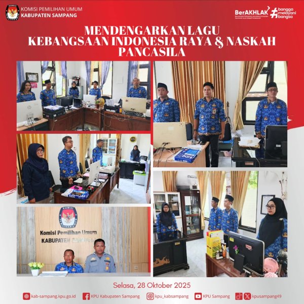 #TemanPemilih.... hari ini Selasa, 28 Oktober 2025, KPU Kabupaten Sampang mendengarkan Lagu Kebangsaan Indonesia Raya dan Naskah Pancasila di Kantor KPU Kabupaten Sampang