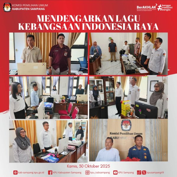 #TemanPemilih.... hari ini, Kamis, 30 Oktober 2025, KPU Kabupaten Sampang mendengarkan Lagu Kebangsaan Indonesia Raya di kantor KPU Kabupaten Sampang