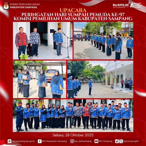 #TemanPemilih.... Segenap Keluarga Besar KPU Kabupaten Sampang Mengucapkan Selamat Memperingati Hari Sumpah Pemuda ke-97, 28 Oktober 2025.