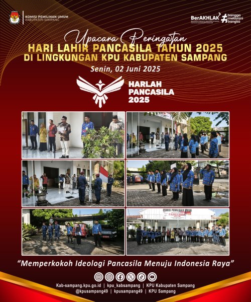 Melalui upacara peringatan ini, KPU Kabupaten Sampang menegaskan komitmennya untuk terus menanamkan dan mengamalkan nilai-nilai Pancasila dalam setiap aspek penyelenggaraan kepemiluan. Semangat gotong-royong, keadilan, dan persatuan yang terkandung dalam Pancasila diharapkan menjadi landasan kuat dalam membangun demokrasi yang berintegritas dan bermartabat di Kabupaten Sampang.