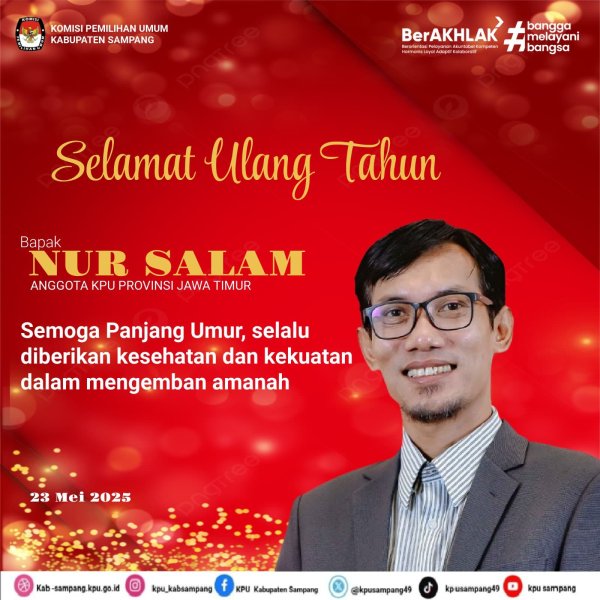 #TemanPemilih..... hari ini Jum'at, 23 Mei 2025, segenap keluarga besar KPU Kabupaten Sampang mengucapkan selamat ulang tahun kepada Anggota KPU Provinsi Jawa Timur Bapak Nur Salam