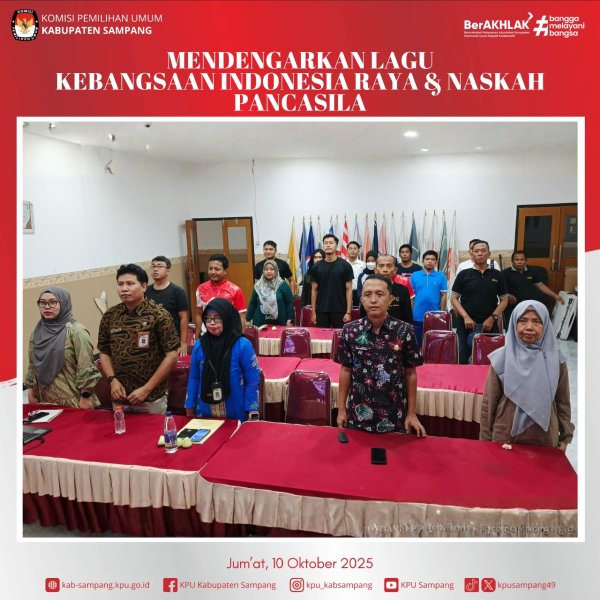 #TemanPemilih.... Hari ini Jum'at, 10 Oktober 2025, KPU Kabupaten Sampang Mengikuti Kegiatan Supervisi Pembuatan Akun SiMPEL dan Pemetaan Kebutuhan Pelatihan di Lingkungan KPU Provinsi dan KPU Kabupaten/Kota di Provinsi Jawa Timur secara daring melalui Zoom Meeting di Aula Kantor KPU Kabupaten Sampang. Kegiatan ini diikuti oleh Sekretaris KPU Kabupaten Sampang, Semua Kasubbag, beserta seluruh Staff Sekretariat KPU Kabupaten Sampang.
