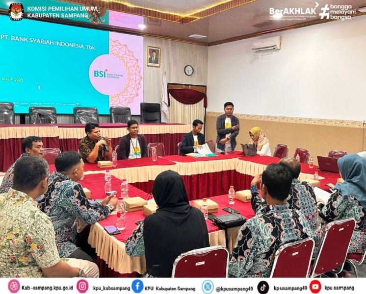 Sekretaris KPU Kabupaten Sampang H. Arif Yudiono dan seluruh staff kesekretariatan menyambut baik kedatangan dari Bank Syariah Indonesia (BSI).