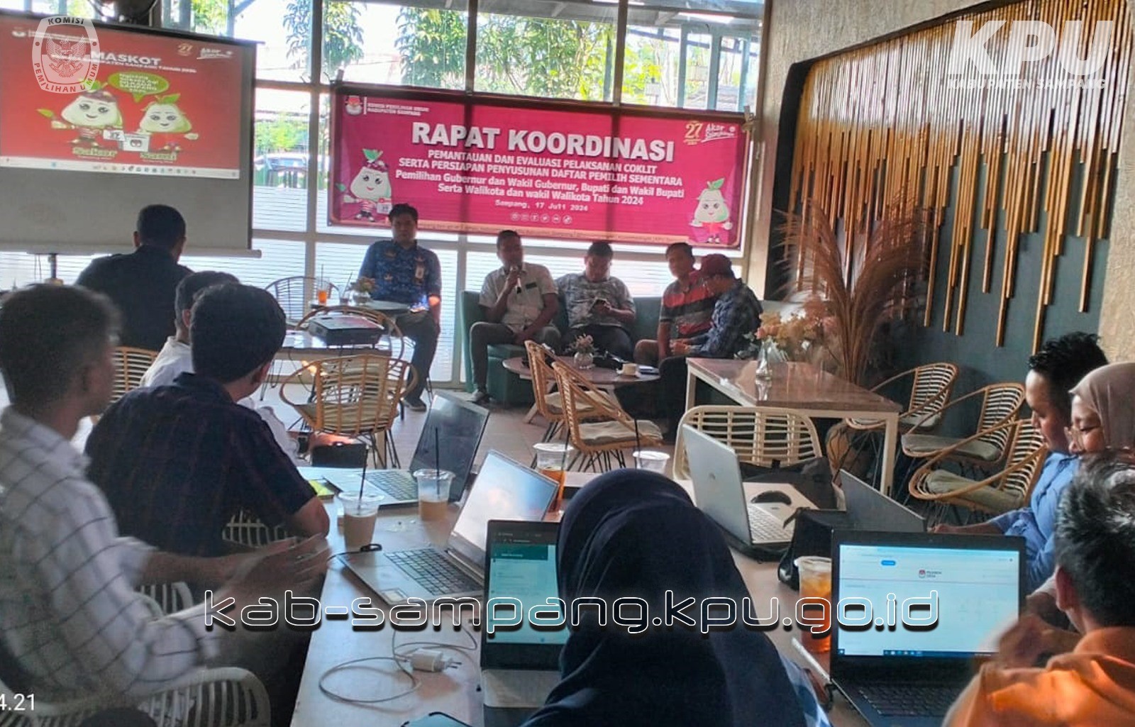 Sampang, kab-sampang.kpu.go.id - Komisi Pemilihan Umum (KPU) Kabupaten Sampang menggelar Rapat Koordinasi Pemantauan dan Evaluasi Pencocokan dan Penelitian (Coklit) serta Persiapan Penyusunan Daftar Pemilih Sementara (DPS) Pemilihan Kepala Daerah Serentak Tahun 2024, di Febria Cafe, Jl. H. Makboel Sampang, Rabu (17/07/24). Acara yang dihadiri oleh Divisi Peremcanaan, Data, dan Informasi PPK se Kabupaten Sampang tersebut digelar untuk memantau dan mengevaluasi coklit. Hal ini disampaikan oleh Anggota KPU Kabupaten Sampang, Divisi Perencanaan, Data, dan Informasi, Moh. Karimullah saat memimpin acara. "Kita perlu mengecek kembali, memantau apa masih ada pemilih yang masih tercecer" kata Karim. "Evaluasi ini penting agar pencapaian coklit yang kita laksananakan sampai saat ini memenuhi prinsip pendataan pemilih" terangnya lagi. Karim mengingatkan PPK dan PPS serta Pantarlih untuk mencermati kembali data hasil coklit yang dilaksanakan sejak tanggal 24 Juni 2024 tersebut. "Masih ada waktu untuk kita mencermati kembali, pastikan datanya benar-benar valid, tidak ada data ganda dan lain sebagainya sebalum nantinya ditetapkan sebagai DPS" tegas Karim Senada dengan Karim, Ketua KPU Kabupaten Sampang, Aliyanto yang dalam acara tersebut memberikan sambutan, mengatakan bahwa PPK harus mencermati hasil coklit. "PPK harus melakukan monitoring dan mencermati hasil Coklit, yang nantinya akan dilakukan penyusunan Daftar Pemilih Hasil Pemutakhiran oleh PPS dari tanggal 25-31 Juli 2024 dan diplenokan oleh PPS tanggal 1-3 Agustus 2024". terang Ali. Ali berharap data pemilih yang dihasilkan menjadi data yang akurat dan valid. "Kami berharap DPHP tersebut menjadi data yang sudah akurat dan valid. Selain itu tolong jaga betul data pemilih tersebut jangan sampai diberikan kepada pihak lain karena mengandung data pribadi yang harus dilindungi" tutup Ali. mc