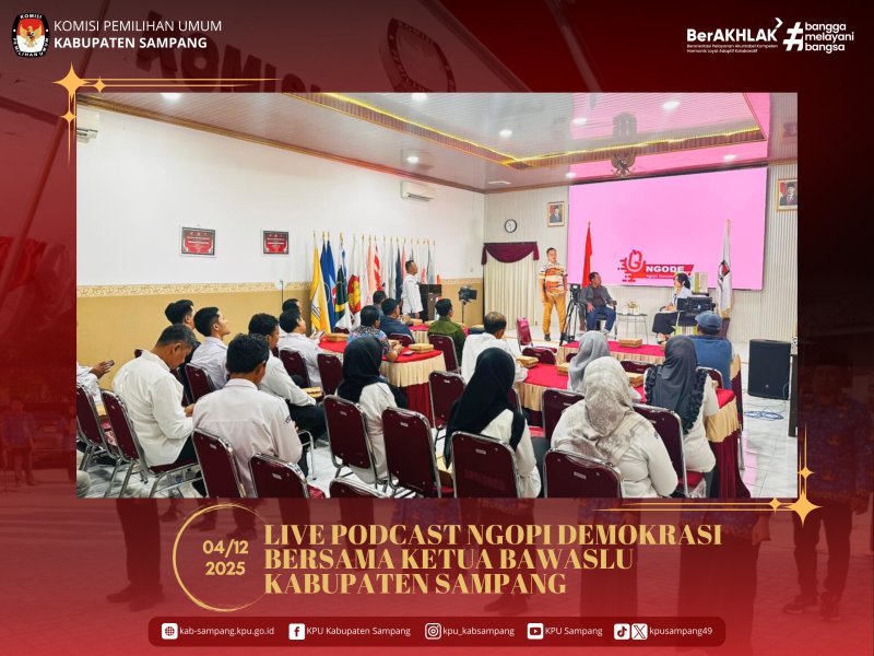 #TemanPemilih... KPU Kabupaten Sampang telah melakukan LIVE Podcast KPU Kabupaten Sampang, Podcast Ngopi Demokrasi (NGODE) Episode #5, pada Hari ini, Kamis, 04 Desember 2025. Podcast Ngopi Demokrasi kali ini mengangkat tema "Ada Apa dengan Pengawasan Pilkada Sampang 2024 ?" dengan narasumber yang sangat spesial pada kesempatan kali ini, yaitu, Bapak Muhalli. Beliau merupakan Ketua Bawaslu Kabupaten Sampang.