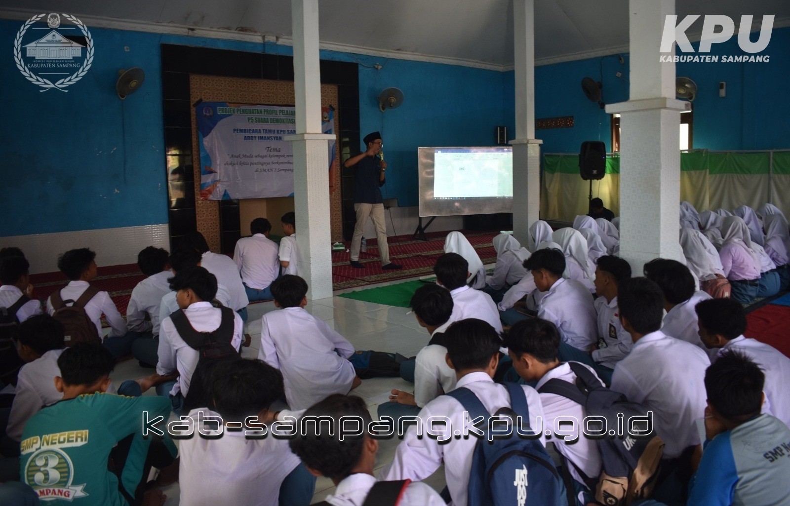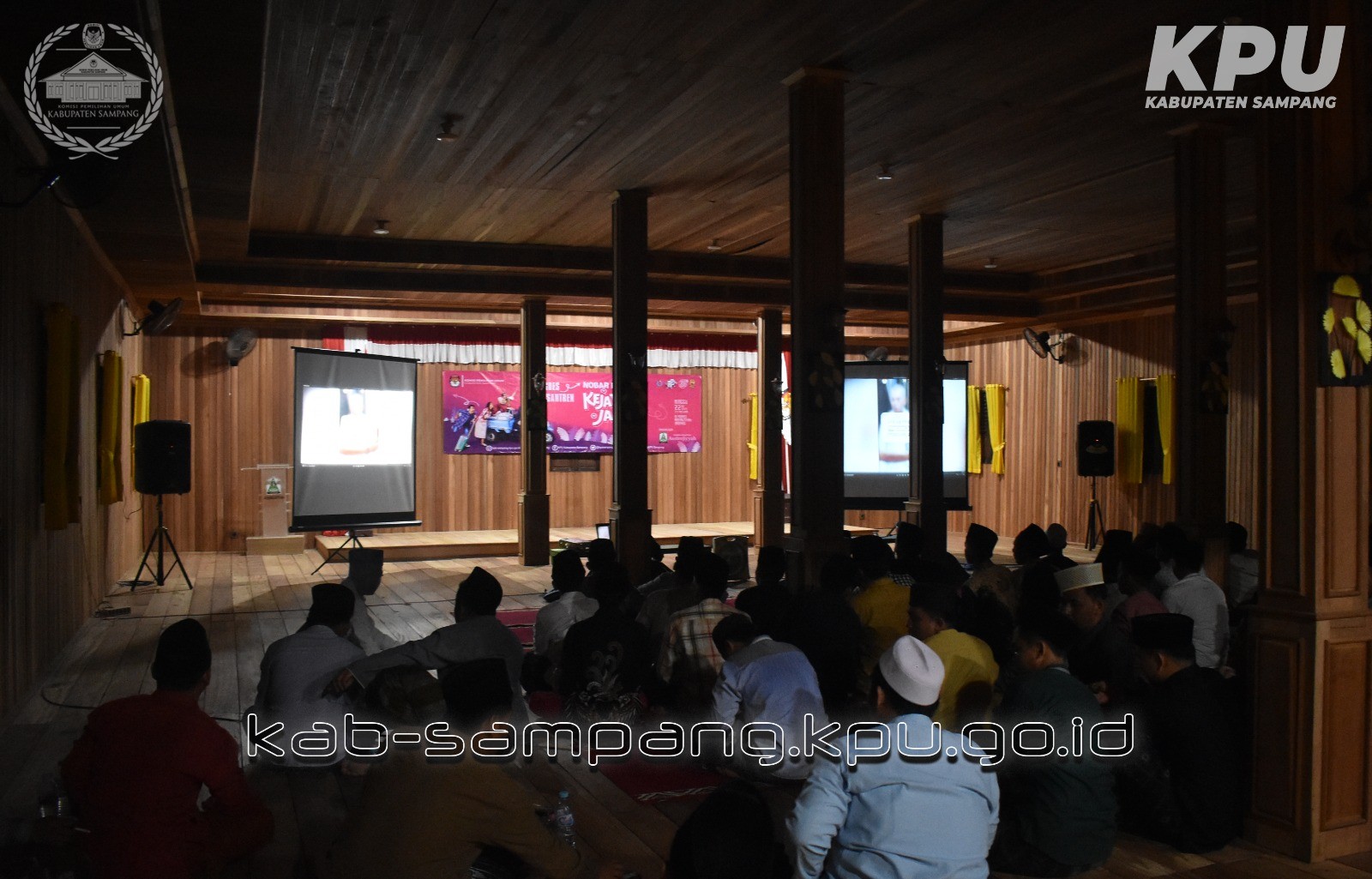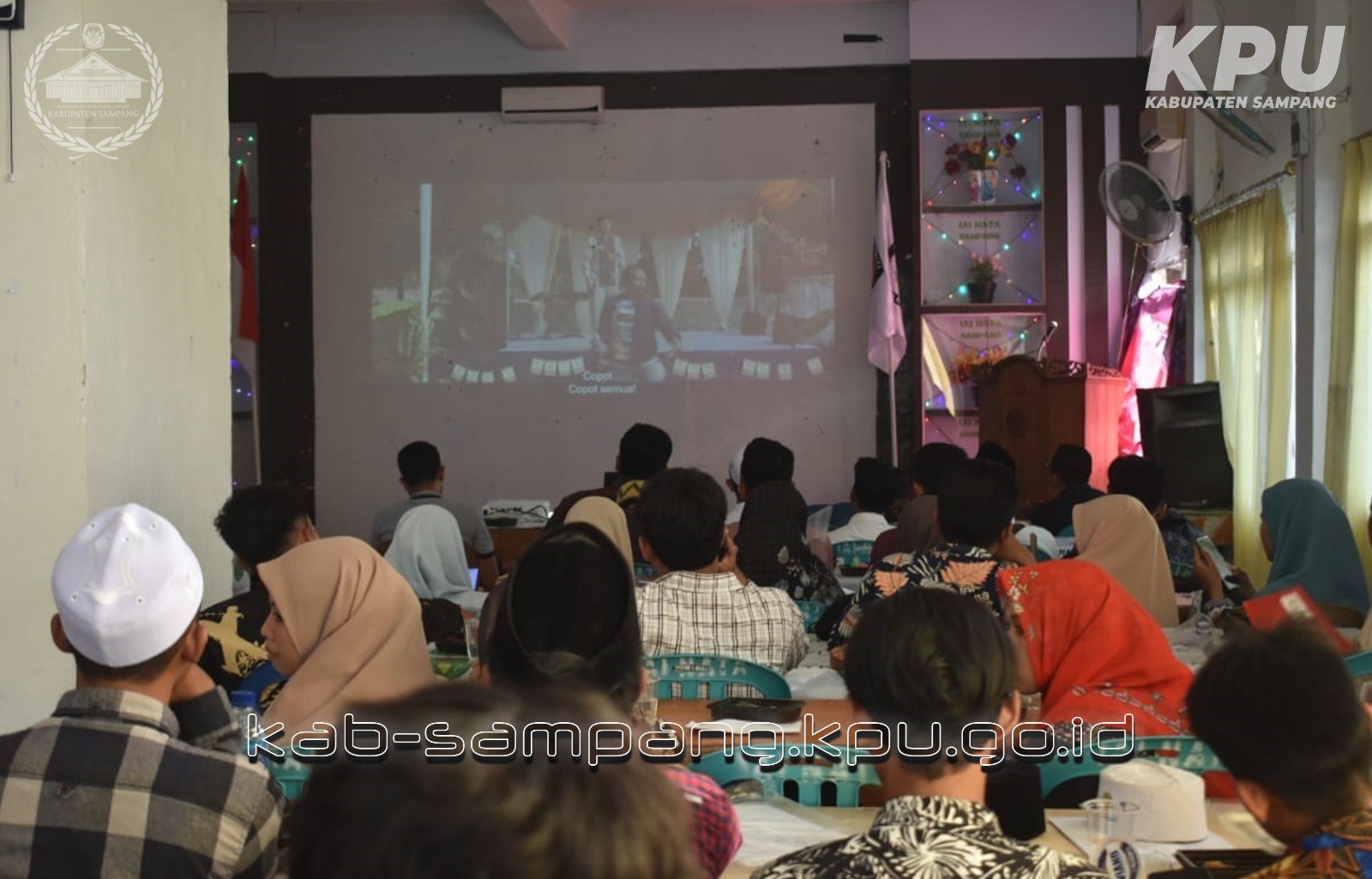 Sampang, kab-sampang.kpu.go.id – Komisi Pemilihan Umum (KPU) Kabupaten Sampang menggelar Goes to Campus ke Institut Agama Islam Nazhatut Thullab (IAI Nata) Sampang Madura, Sabtu (28/10/23) kemarin. Dalam kegiatan yang diikuti oleh puluhan Mahasiswa IAI Nata Sampang tersebut KPU Kabupaten Sampang mengadakan Nonton Bareng (Nobar) Film Kejarlah Janji. Para Mahasiswa cukup antusias mendapatkan pendidikan pemilih dari KPU Kabupaten Sampang melalui Nobar Film Kejarlah Janji yang digelar di Auditorium IAI Nata Sampang tersebut. Anggota KPU Kabupaten Sampang, Divisi Sosialisasi, Pendidikan Pemilih, Partisipasi Masyarakat dan SDM, Taufiq Rizqon dalam sambutannya menyampaikan bahwa KPU Kabupaten Sampang sengaja menggelar Nobar Film Kejarlah Janji di IAI Nata Sampang untuk mensosialisasikan pemilu tahun 2024 kepada Mahasiswa yang notabene adalah pemilih muda. “Kegiatan ini untuk mensosialisasikan kepada seluruh peserta yaitu mahasiswa yang muda-muda bahwa hari rabu tanggal 14 februari 2024 kita akan melaksanakan pencoblosan Bersama” paparnya. Rektor IAI Nata Sampang melalui Sekretaris LPM (Lembaga Penjaminan Mutu), Nur Jamal menyambut baik kegiatan yang dilaksanakan oleh KPU Kabupaten Sampang tersebut di Kampus IAI Nata Sampang. “Kegiatan yang dilaksanakan pada hari ini adalah kegiatan satu-satunya di perguruan tinggi yang dilakukan oleh KPU. Ini menjadi kehormatan bagi kami, mudah-mudahan hubungan silaturahmi ini terus berlanjut” tuturnya. Film Kejarlah Janji merupakan film Garapan Sutradara Garin Nugroho dan dibintangi oleh Ibnu Jamil, Cut Mini, Shenina Cinnamon, Bima Zeno, dan Thomas Rian. Melalui film ini, KPU ingin juga menyampaikan salah satu misi penting pemilu, yakni pemilu sebagai sarana integrasi bangsa. Selain itu, film ini merupakan bagian dari upaya KPU melakukan pendidikan kewarganegaraan (civic education). mc