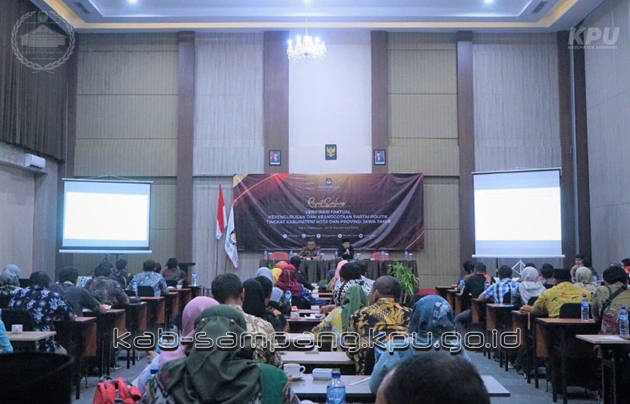 Hai #TemanPemilih Pasuruan, kab-sampang.kpu.go.id – Divisi Teknis Penyelenggaraan, Siti Aisah, beserta Ka Subbag Teknis dan Hupmas, Mudhar, dan Operator Sipol KPU Kabupaten Sampang, R. Rony Wahyudi mengikuti Rapat Evaluasi Verifikasi Faktual Kepengurusan dan Keanggotaan Partai Politik Tingkat Kabupaten/Kota dan Provinsi Jawa Timur. Kamis-Sabtu, 10-12 November 2022, di Kantor KPU Kota Pasuruan, Jl. Panglima Sudirman Nomror 119 Kota Pasuruan. Dalam acara yang digelar oleh KPU Provinsi Jawa Timur tersebut diikuti 114 orang peserta terdiri dari Divisi Teknis Penyelenggaraan, Kasubag Tekmas, dan admin/verifikator Sistem Informasi Politik (Sipol) KPU Kabupaten/Kota se-Jawa Timur. Usai mengikuti acara, Siti Aisah kepada mc mengatakan bahwa banyak dinamika yang dihadapi oleh KPU Kabupaten/Kota dan KPU Provinsi Jawa Timur dalam melaksanakan verifikasi faktual Partai Politik Calon Peserta Pemilu Serentak Tahun 2024. Hal itu merupakan evaluasi yang disampaikan oleh Divisi Teknis Penyelenggaraan KPU Provinsi Jawa Timur, Insan Qoriawan. Oleh karena itu, kata Aisah, “Bapak Insan Qoriawan meminta KPU Provinsi dan KPU Kabupaten/Kota bisa menyikapi dan mengambil hikmah demi tercapainya tujuan dengan baik” Siti Aisah juga mengatakan selain KPU Provisni Jawa Timur, evaluasi juga disampaikan oleh Bawaslu Provinsi Jawa Timur terkait dengan pengawasan dalam tahapan penyelenggaraan verifikasi faktual oleh KPU Provinsi dan Kabupaten/Kota di Jawa Timur. (mc) #KPUMelayani #PemiluSerentak2024