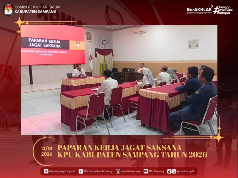 #TemanPemilih.... Hari ini, Senin, 12 Januari 2026, KPU Kabupaten Sampang mengadakan Paparan Kerja Jagat Saksana, secara luring, di Aula KPU Kabupaten Sampang.