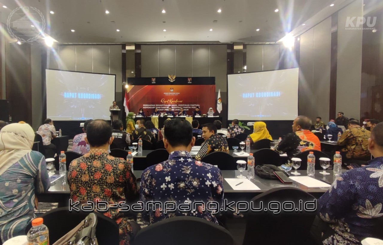 Hai #TemanPemilih Surabaya, kab-sampang.kpu.go.id – Setelah menuntaskan verfikasi faktual (verfak) kepengurusan dan keanggotaan partai politik calon peserta pemilu serentak tahun 2024 pada 04 November 2024 pukul 23.59 WIB, KPU Kabupaten Sampang menyampaikan hasil verfak kepada KPU Provinsi Jawa Timur (06/11/2022). Hasil verfak tersebut disampaikan oleh Divisi Teknis Penyelenggaraan KPU Kabupaten Sampang, Siti Aisah bersama 37 KPU Kabupaten/Kota lainnya kepada KPU Provinsi Jawa Timur pada Rekapitulasi Hasil Verifikasi Faktual Kepengurusan dan Keanggotaan Partai Politik Tingkat Provinsi Jawa Timur pada 05-06 November 2022 di Royal Tulip Darmo Surabaya. Usai menyampaikan hasil Verfak, Siti Aisah berterimakasih kepada Tim Verifikator KPU Kabapaten Sampang yang telah melaksanakan verifikasi mulai verifikasi administrasi sampai verifikasi faktual “Hari ini kami sudah menyampaikan hasil kerja tim pada KPU Provinsi Jawa Timur, Kami mengapresiasi setinggi-tingginya dan mengucapkan terima kasih tak terhingga atas dedikasi tim dalam tahapan verfak ini” kata Aisah kepada semua Tim Verifikator KPU Kabupaten Sampang. Siti Aisah juga mengingatkan segenap jajaran sekretariat untuk menjaga kesehatan, karena tahapan pemilu masih panjang. “Apa lagi aka nada verfak perbaikan nanti pada 24 November 2022” tambahnya. (mc) #KPUMelayani #PemiluSerentak202