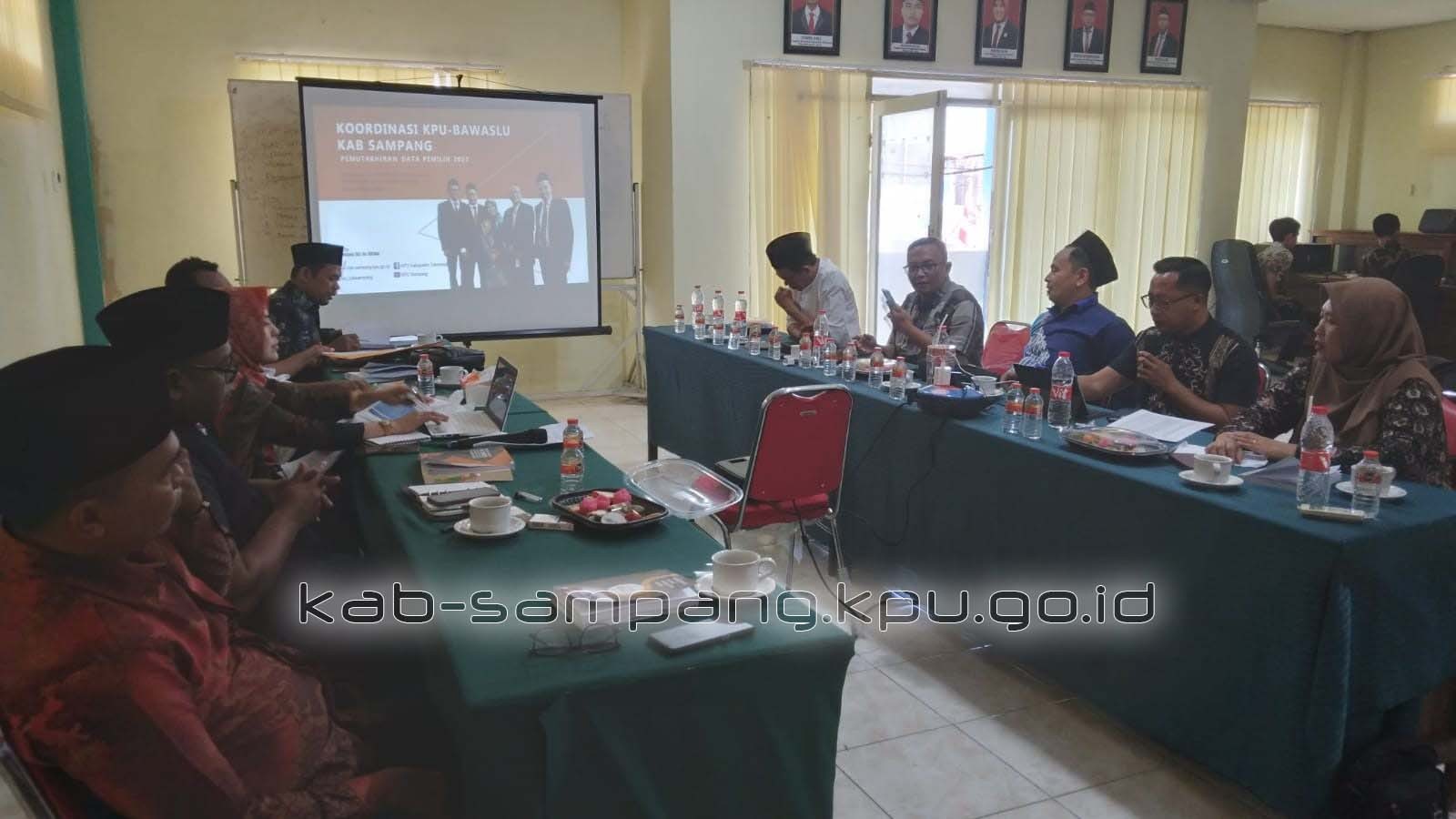 Hai #TemanPemilih Sampang, kab-sampang.kpu.go.id – KPU Kabupaten Sampang menghadiri undangan koordinasi Bawaslu Kabupaten Sampang Kamis (11/08/22) pukul 09.00 WIB di Aula Kantor Bawaslu Kabupaten Sampang. Maksud diadakannya forum koordinasi tersebut adalah untuk menyamakan persepsi antara Bawaslu Kabupaten Sampang dan KPU Kabupaten Sampang tentang beberapa hal yang diproyeksikan akan menjadi potensi masalah dalam verifikasi administrasi pada tahapan pendaftaran, verifikasi, dan penetapan partai politik, serta tindak lanjut SE KPU RI Nomor 17 Tahun 2022 dalam pemutakhiran daftar pemilih berkelanjutan. Dalam pertemuan yang berlangsung selama 5 jam tersebut dibahas beberapa potensi masalah yang kemungkinan akan dihadapi, serta penyelesaiannya sesuai dengan ketentuan perundang-undangan yang berlaku. KPU Kabupaten Sampang dan Bawaslu Kabupaten Sampang terus berupaya untuk melakukan langkah-langkah taktis dalam memitigasi potensi masalah yang dapat mencegah adanya sengketa seperti yang disampaikan oleh Yunus Ali Ghafi, Kordiv Penanganan Pelanggaran Bawaslu Kabupaten Sampang. “Kita di sini duduk bersama untuk mencegah adanya sengketa” Senada dengan Yunus, Muhalli, Kordiv Penyelesaian Sengketa mengatakan bahwa pertemuan yang diadakan oleh Bawaslu Kabupaten Sampang dengan KPU Kabupaten Sampang adalah untuk menyamakan persepsi tentang beberapa hal yang berkaitan dengan potensi masalah dalam tahapan. Sedangkan Ketua KPU Kabupaten Sampang, Addy Imansyah berharap adanya kesepemahaman regulasi antara KPU Kabupaten Sampang dengan Bawaslu Kabupaten Sampang dalam penyelenggaraan tahapan. Siti Aisah, Divisi Teknis Penyelenggaraan mengatakan bahwa Bawaslu Kabupaten Sampang dan KPU Kabupaten Sampang mempunyai ikhtiar yang sama dalam mencegah adanya sengketa tahapan. KPU Kabupaten Sampang menghadiri pertemuan tersebut diwakili oleh semua Komisioner, Addy Imansyah (Ketua), Aliyanto (Divisi Rendatin), Siti Aisah (Divisi Teknis Penyelenggaraan), Taufiq Rizqon (Divisi Sosdiklih, Parmas, dan SDM), dan M. Syamsul Arifin (Divisi Hukum dan Pengawasan). Sedangkan Bawaslu Kabupaten Sampang yang menerima KPU Kabupaten Sampang di Aula Kantornya adalah Insiyatun (Ketua Dan Kordiv Pengawasan dan Hubungan Antar Lembaga), Muhalli (Kordiv Penyelesaian Sengketa), Luddin (Kordiv SDM dan Organisasi), Suhariyanto (Kordiv Hukum Data dan Informasi), Yunus Ali Ghafi (Kordiv Penanganan Pelanggaran). (mc) #KPUMelayani #PemiluSerentak2024