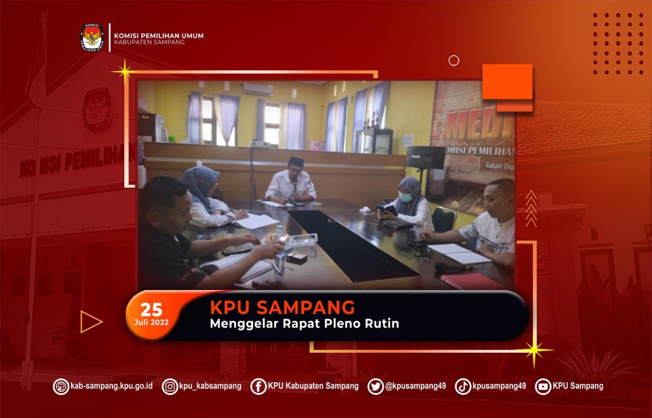KPU Kabupaten Sampang tetap menjaga kontinuitas melaksanakan rapat pleno rutiin sesuai Pasal 63 Ayat (4) Peraturan Komisi Pemilihan Umum Nomor 8 Tahun 2019 tentang Tata Kerja Komisi Pemilihan Umum, Komisi Pemilihan Umum Provinsi dan Komisi Pemilihan Umum Kabupaten/Kota, sebagaimana telah beberapa kali diubah terakhir dengan Peraturan Komisi Pemilihan Umum Nomor 21 Tahun 2020 tentang Perubahan Kedua atas Peraturan Komisi Pemilihan Umum Nomor 8 Tahun 2019 tentang Tata Kerja Komisi Pemilihan Umum, Komisi Pemilihan Umum Provinsi dan Komisi Pemilihan Umum Kabupaten/Kota, KPU Kabupaten Sampang menggelar rapat pleno rutin paling sedikit 1 (satu) kali setiap minggu. (mc)