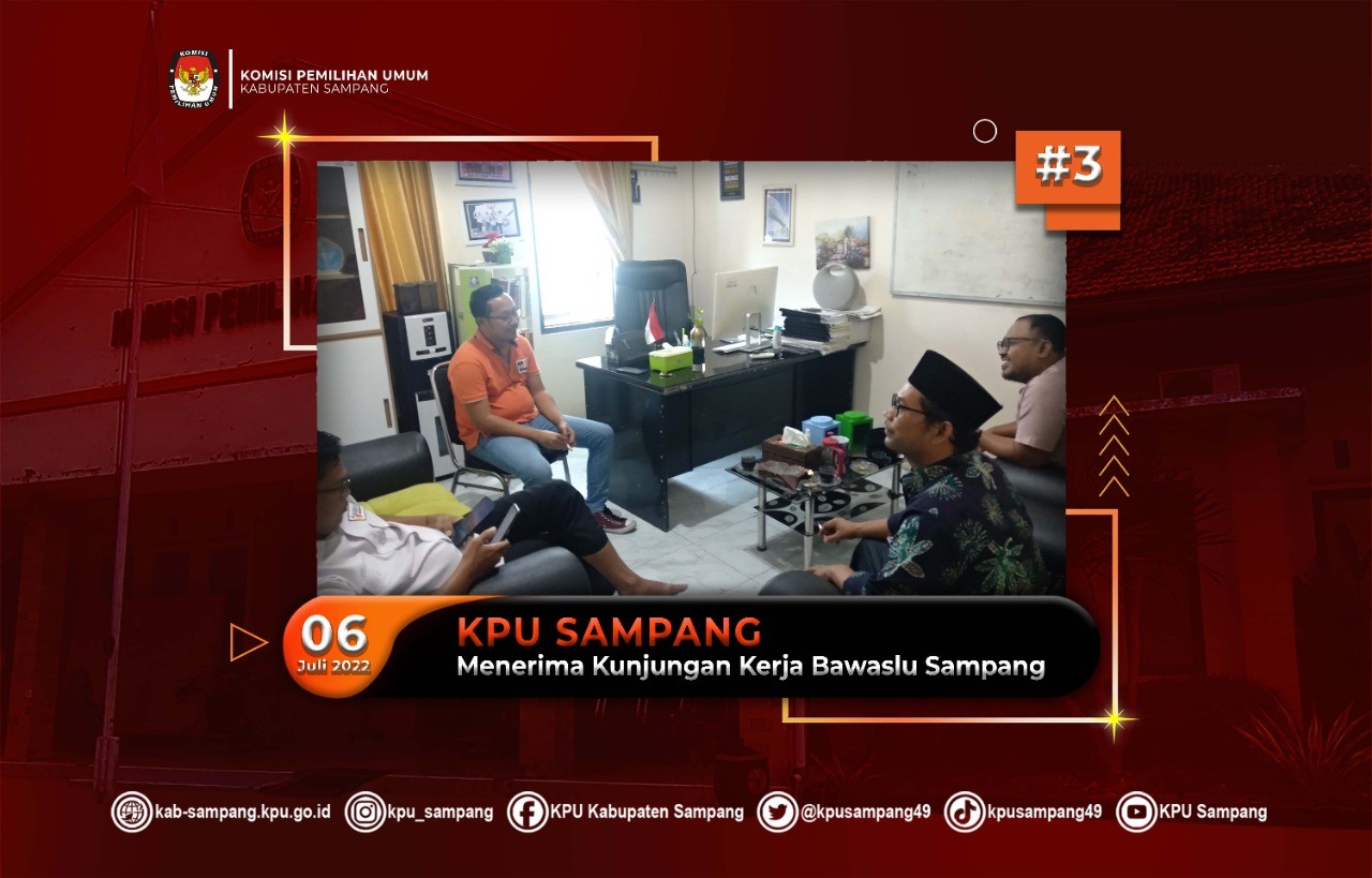 Hai #temanpemilih Sampang, kab-sampang@kpu.go.id - Rabu (06/07/22), Divisi Teknis Penyelenggaraan KPU Kabupaten Sampang, Siti Aisah menerima kunjungan kerja Kasubid Lembaga Parpol dan Kemasyarakatan Bakesbangpol Kabupaten Sampang, Bambang di ruang kerjanya. Dalam kedatangannya, Mantan Sekretaris Bawaslu Kabupaten Sampang tersebut membawa agenda koordinasi kegiatan partai politik pra pendaftaran partai politik ke KPU Kabupaten Sampang, "kami ingin berkoordinasi tentang parpol yang sudah ke KPU parpol apa saja?" tanya Bambang Divisi Teknis Penyelenggaraan melalui Kasubag Tekmas, Mudhar mengatakan bahwa partai politik yang mendatangi KPU Kabupaten Sampang ada 2 (dua), "parpol yang datang ke KPU ada 2 (dua), Partai Gelora, dan PKPI. Gelora adalah partai pertama yang datang, mereka memperkenalkan kepengurusan mereka. Dan yang kedua adalah PKPI, dengan maksud menyampaikan SK kepengurusan" terang Mudhar. (mc) #KPUMelayani #PemiluSerentak2024Mulai #Berintegritas24Jam