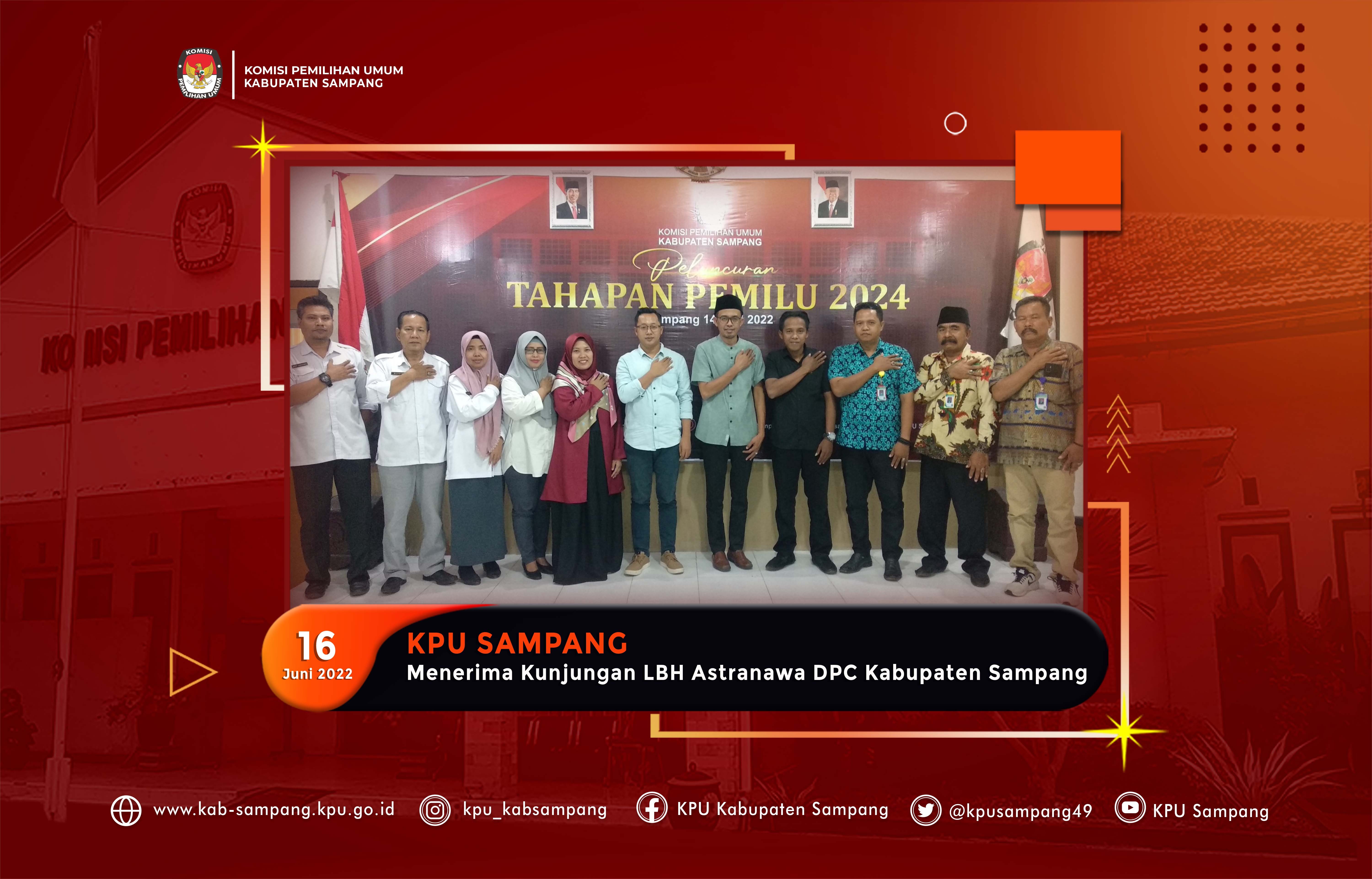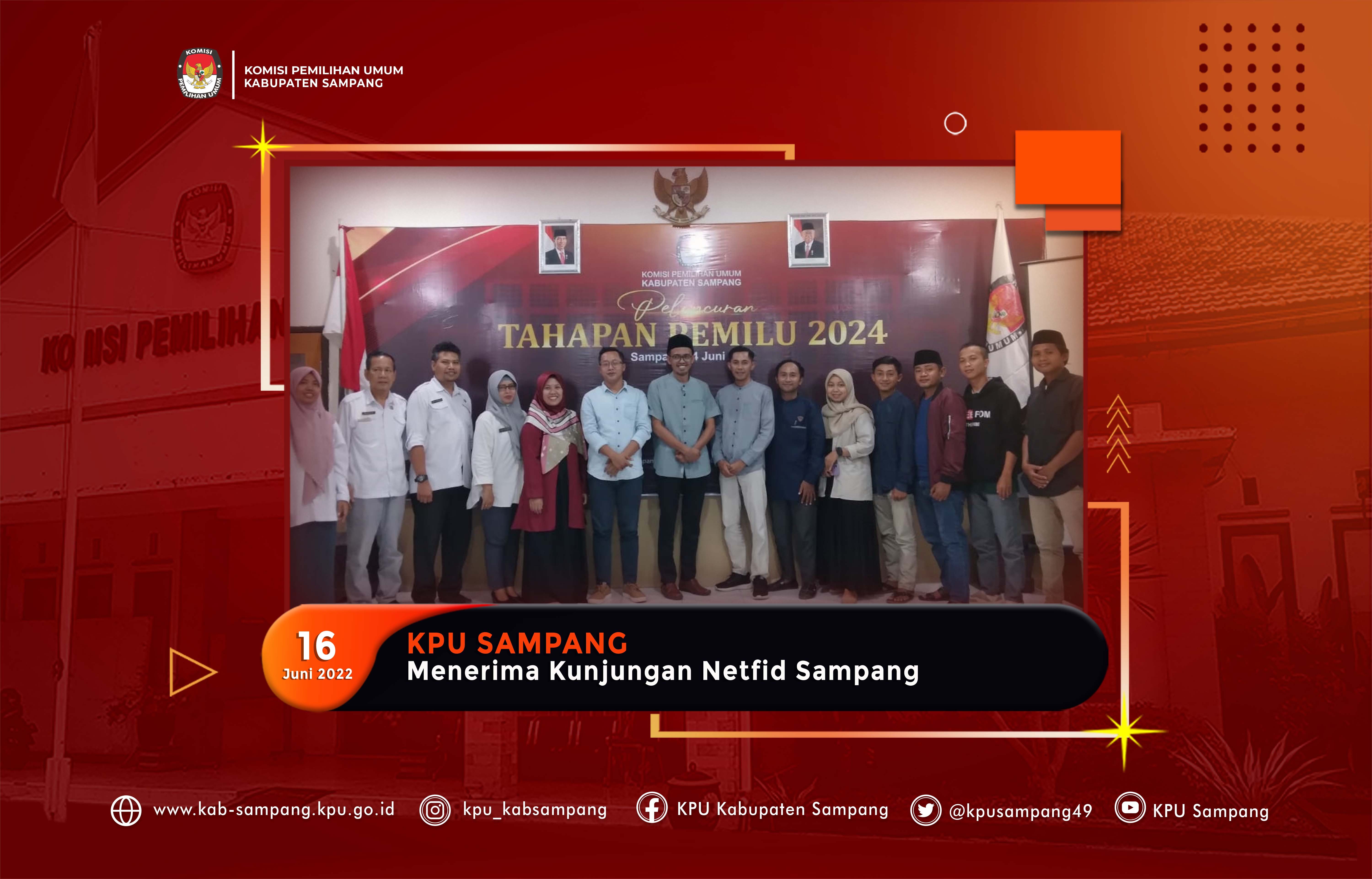 Sampang, kab-sampang.kpu.go.id – Network For Indonesian Democratic Society (NETFID) Kabupaten Sampang berkunjung ke KPU Kabupaten Sampang Kamis siang (16/06/22). Kedatangan Netfid Kabupaten Sampang yang dikomandoi oleh Sekretaris, Lukman Hakim tersebut mempunyai maksud untuk bekerja sama dengan KPU Kabupaten Sampang dalam mensukseskan Pemilu Serentak Tahun 2024. Hal ini disampaikan oleh Sekretaris Netfid Kabupaten Sampang pada Silaturahim yang berlangsung Aula KPU Kabupaten Sampang “Netfid ingin berkolaborasi dengan KPU Kabupaten Sampang dalam hal pendidikan pemilih untuk meningkatkan integritas pemilu” kata Lukman.