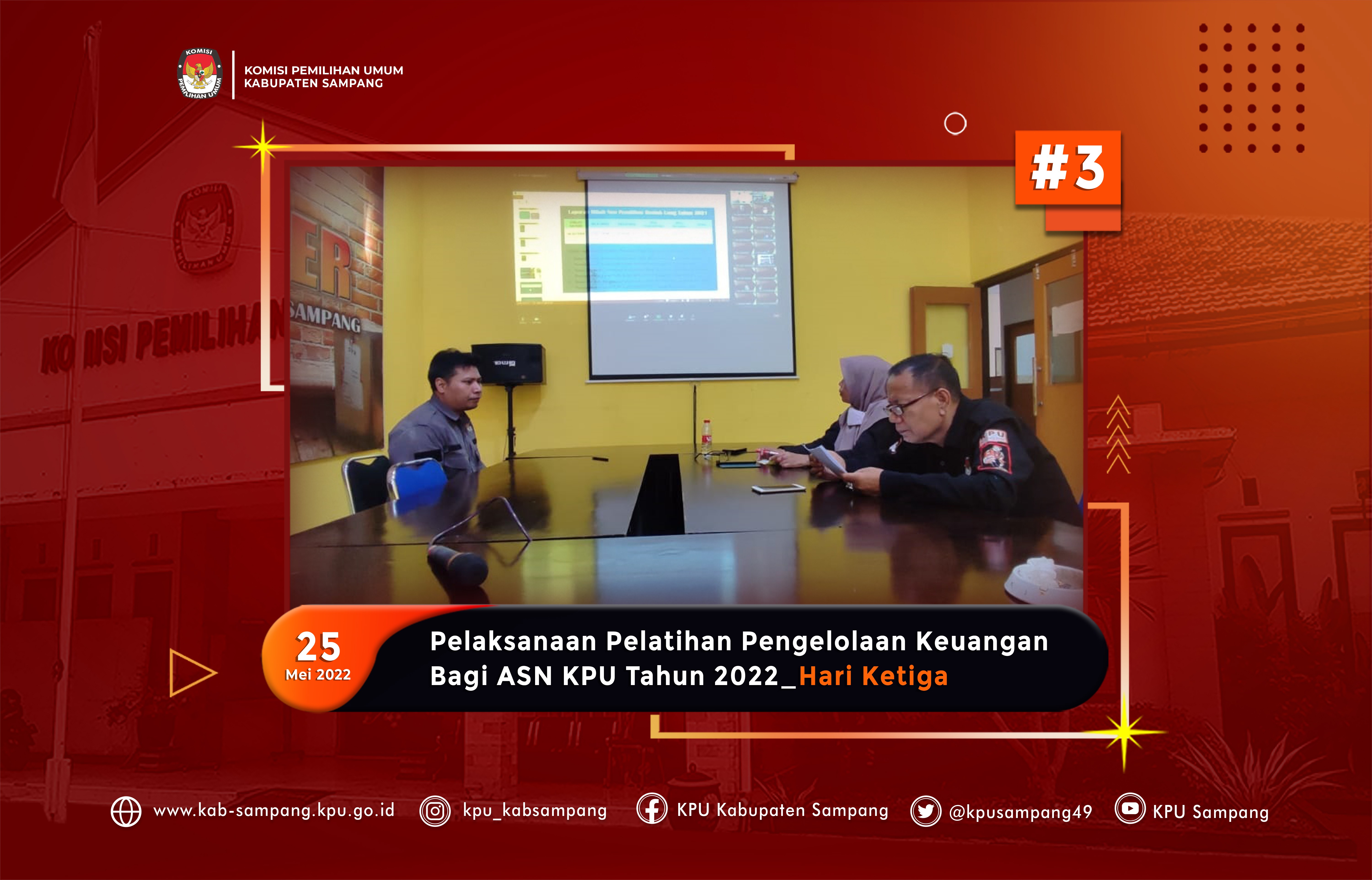 Hai #temanpemilih Hari Keempat, Pengendalian Internal Pengelolaan Keuangan Jadi Fokus Pelatihan Sampang, kab-sampang.kpu.go.id – Untuk menjaga integritas sebuah lembaga pemerintahan dalam pengelolaan keuangan, pengendalian internal menjadi sangat penting. Bagaimana tidak, jika tidak dilakukan pengendalian internal maka akan berpotensi menjadi kerugian negara, seperti adanya praktik-praktik kecurangan, kelalaian, dan lain sebagainya. Dan pada hari keempat (27/05/22) Pelatihan Pengelolaan Keuangan bagi ASN KPU Tahun 2022. Sejumlah ASN KPU Kabupaten Sampang mengikuti pelatihan secara daring secara terpisah, ada yang mengikuti pelatihan di ruang Media Center KPU Sampang, ada yang mengikuti pelatihan di ruang kerja masing-masing, beda dengan hari sebelumnya yang semua peserta mengikuti pelatihan di ruang Media Center KPU Kabupaten Sampang. Kendati demikian, ASN KPU Kabupaten Sampang mencermati materi yang disampaikan oleh Narasumber berkaitan dengan Sistem Pengendalian Internal dalam hal pengelolaan keuangan. Di antara materi yang disampaikan adalah Pengendalian Gratifikasi di Lingkungan KPU, Perjalanan Dinas dalam Negeri di Lingkungan KPU, Pengendalian Internal atas Transaksi, dan Penyelesaian Kerugian Negara terhadap Bendahara. (mc) #kpumelayani #pemiluserentak2024