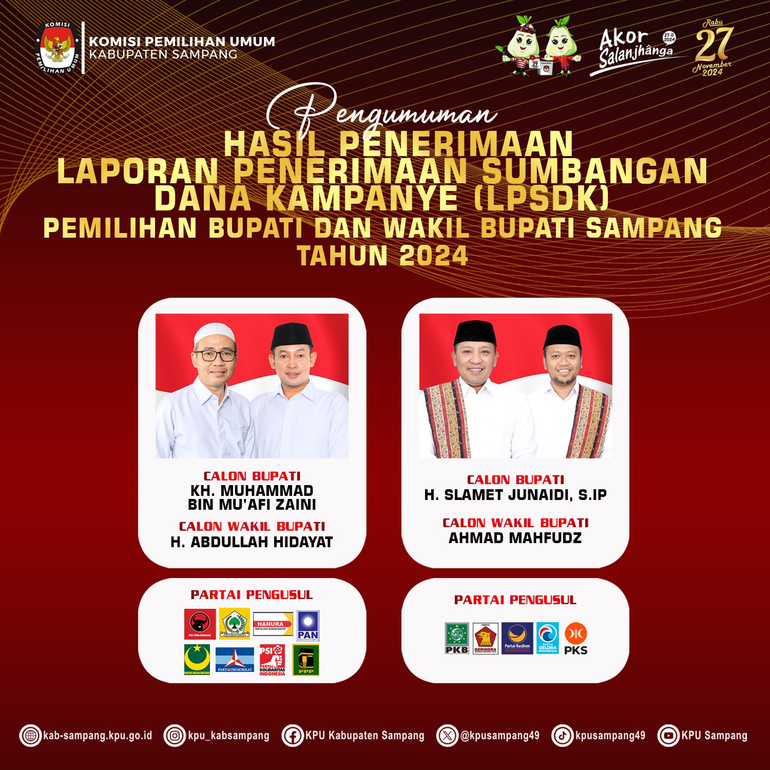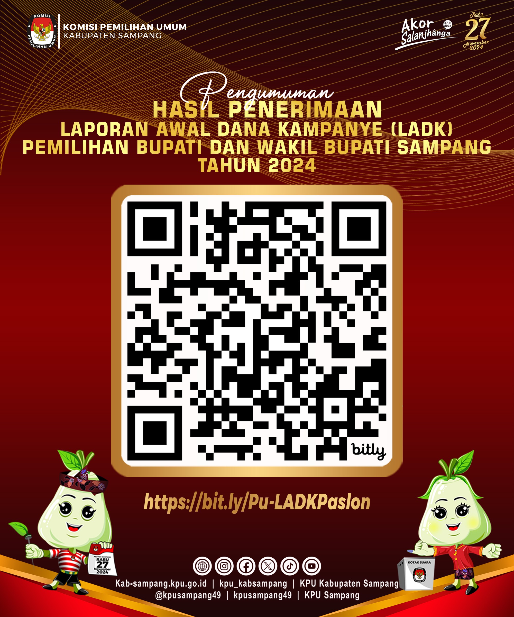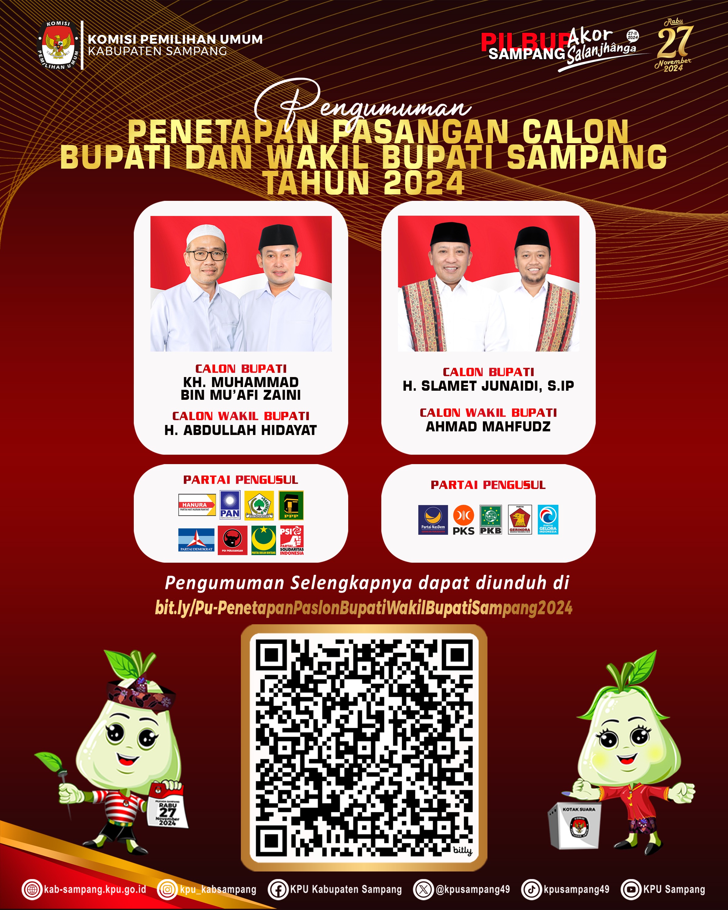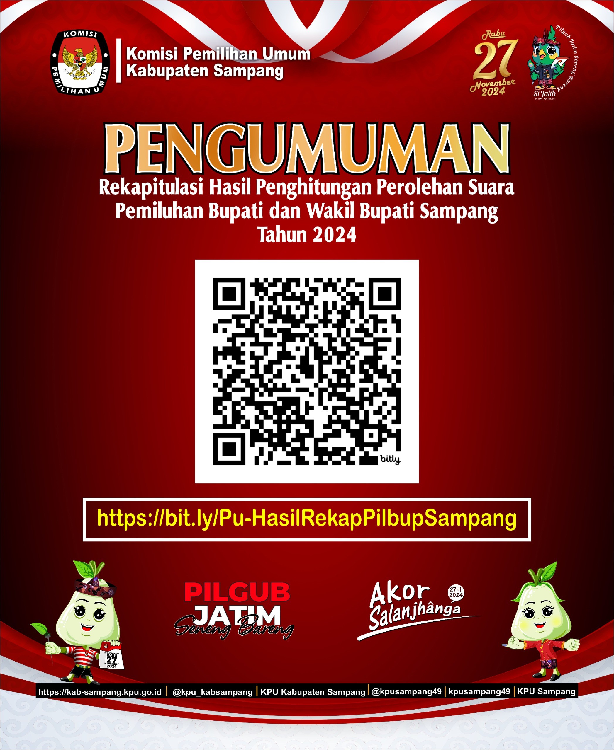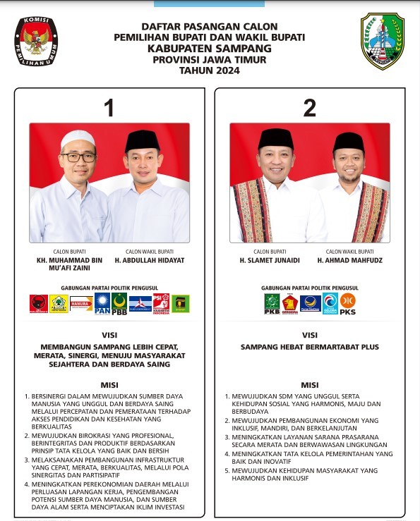 #TemanPemilih, KPU Kabupaten Sampang menetapkan Hasil Pemilihan Bupati dan Wakil Bupati Sampang Tahun 2024 berdasarkan Berita Acara dan Sertifikat Rekapitulasi Hasil Penghitungan Perolehan Suara dari setiap kecamatan dalam Pemilihan Bupati dan Wakil Bupati Tahun 2024 atau formulir MODEL D.HASIL KABKO-KWK-BUPATI/WALIKOTA,